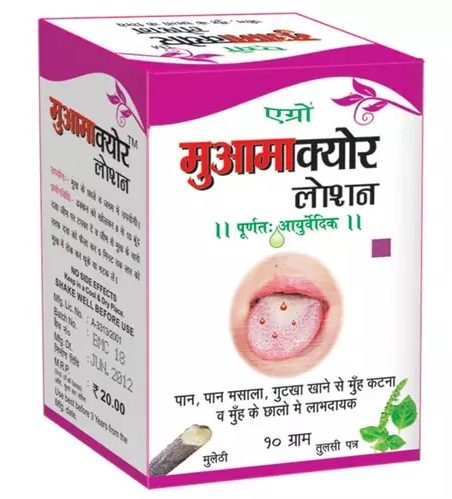 Agrow Muama: Agrow Muama Cure lotion is ayurvedic remedy for all sort of mouth ulcers. It provides relief from mouth ulcers that may occur due to eating hot food, hot tea, or chewing of pan, pan masala and gutkha. Its minty flavour provides soothening effect. Removes death skin around ulcers. Stomatitis.