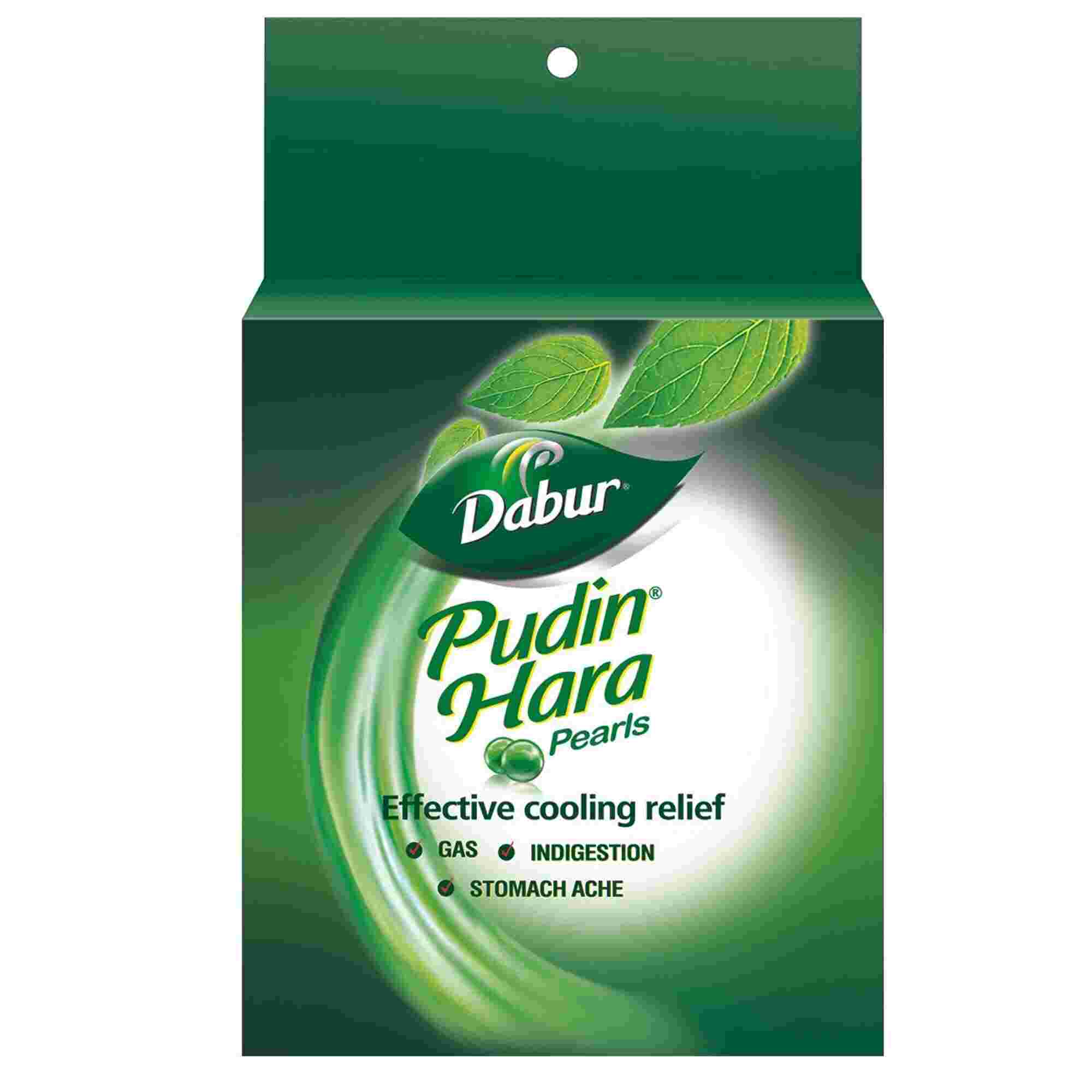 Dabur Pudin Hara Pearls is an Ayurvedic capsule that helps relieve indigestion, gas, and acidity. With Pudina Satva as the main ingredient, it provides quick and effective relief from stomach ailments. Key Ingredients:
