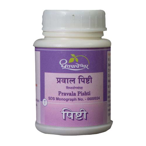 Information about Dhootapapeshwar Pravala Pishti Dhootapapeshwar Prawal Pishti contains Shuddha Pravala, Bhavana - Gulab Jala as active ingredients. Key benefits of Dhootapapeshwar Prawal Pishti: An excellent Dahashamak, mild & Sheeta. Acts as Raktaprasadak by alleviating Vidagdha property of Pitta. Being Pittashamak & Vishaghna effective in Jwara, Kasa, Kshaya, Raktapitta. Useful...