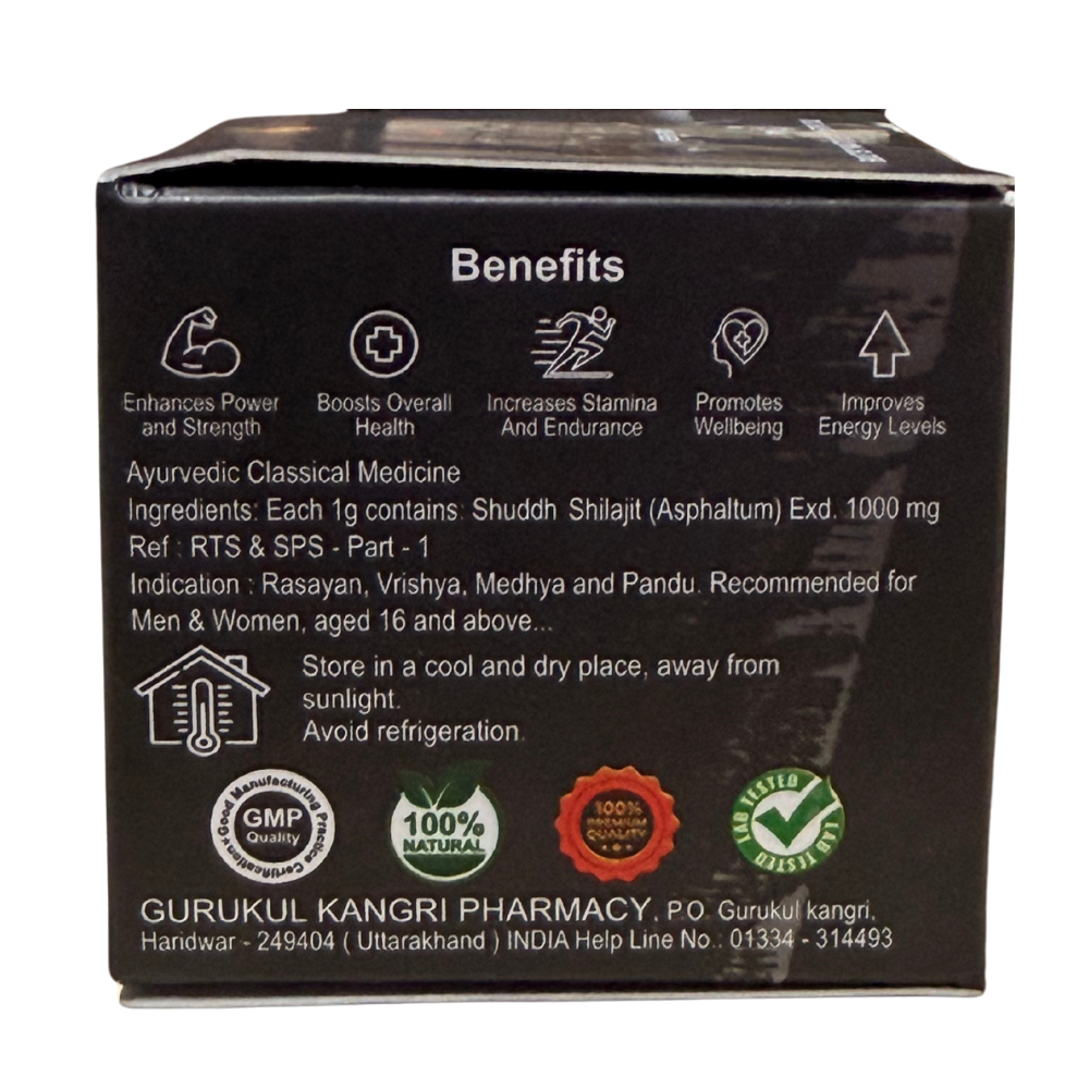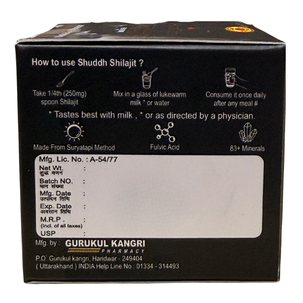 Gurukul Shudh Shilajit Paste is an Ayurvedic herb that is considered to be the most important herb in Ayurvedic medicine. It has been used since prehistoric times and there is evidence of Shilajit in the Indus civilization. Traditionally it was used as a power-increasing tonic.