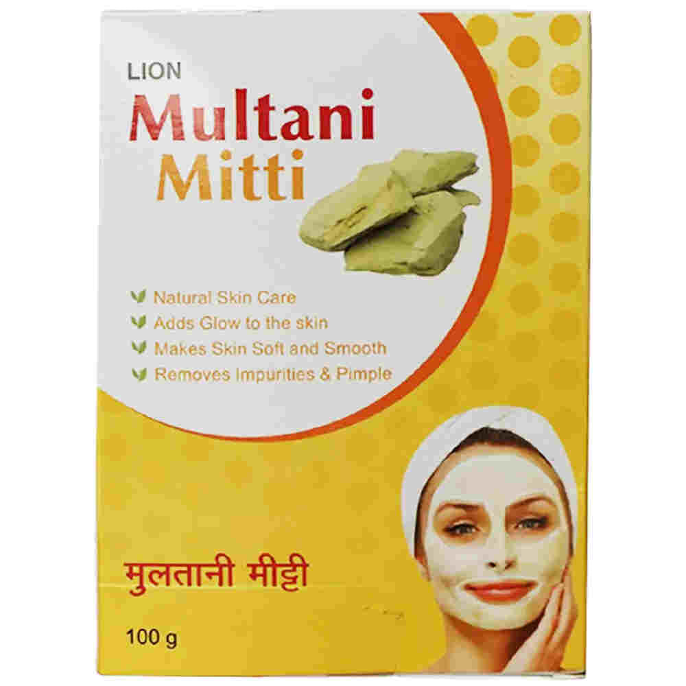 Multani mitti, also known internationally as Indian Healing Clay, is a deep healer of acne and pimples, pulls out blackheads, reduces scars, blemishes, fine lines, and wrinkles, tightens up the skin, shrinks large open pores, and brightens up the complexion. It also helps clean the scalp, clearing away dandruff and scalp flakes. Lion Multani Mitti Powder comes to you as the purest form of Indian Healing Clay. It quickly draws out dead skin cells, accumulated oil, dirt, and grime trapped inside skin pores allowing the skin to breathe, increasing the skin’s collagen production, and giving you bright, glowing skin, and shiny, clean hair.