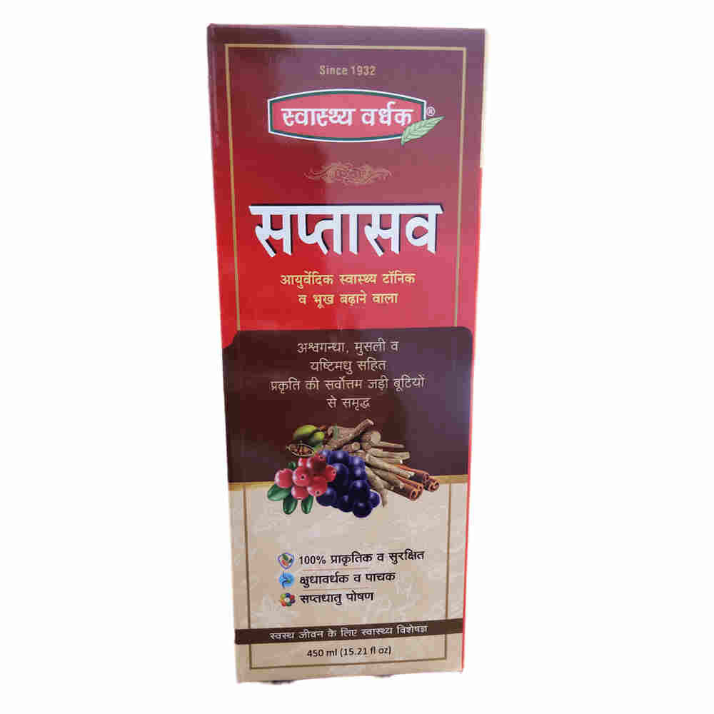 Saptasava Ayurvedic Health Tonic is a 100% natural Multivitamin formulation enriched with Nature's best Herbs for Sapt Dhatu Poshan offered by capable health experts & specialists. Peace & Recreation are essential after a hard-working day & Saptasava's holistic approach focuses on overall wellness & complete rejuvenation of the body. Saptasava made from classical ayurvedic Herbs not only helps overall well-being but also takes care of all individual organs & boosts the body's healing processes, eventually improving the immune & appetite power.