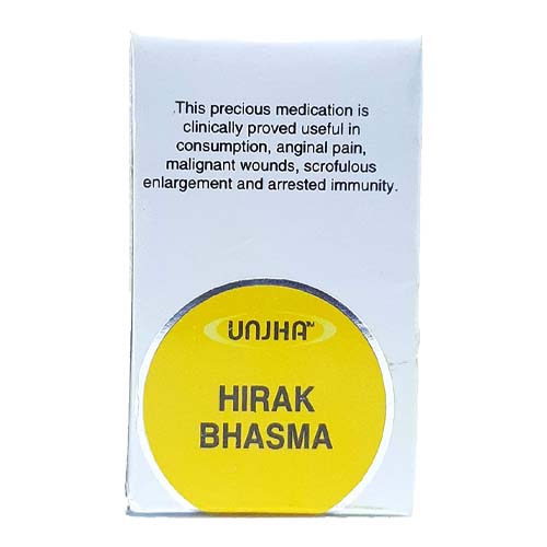 Its a natural Ayurveda product. Hirak bhasma is prepared from the most valuable and hardest substance that is diamond. It is traditionally believed to provide strength and immunity to the body. Hirak bhasm is well known for its action of the muscles of the heart and it also helps to improve general weakness