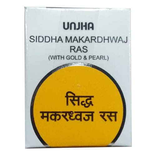 Siddha Makardhwaj (Swarna Moti Yukta) is an ayurvedic mineral-based preparation used for its aphrodisiac characteristics. It beefs up the body and it is beneficial in almost all types of diseases. It also enhances effectiveness of other medicines. It is seldom recommended alone. In different diseases, it is given along with different adjuvants.