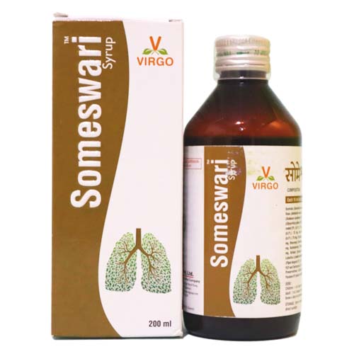 Virgo Someshwari Syrup is an ayurvedic proprietary medicine for respiratory ailments. It helps to relieve congestion by liquefying the mucus and expelling it out. It relieves inflammation in the respiratory tract and relieves symptoms of bronchitis. It reduces bronchospasm and facilitates easy and smooth breathing and relieves breathing difficulty.